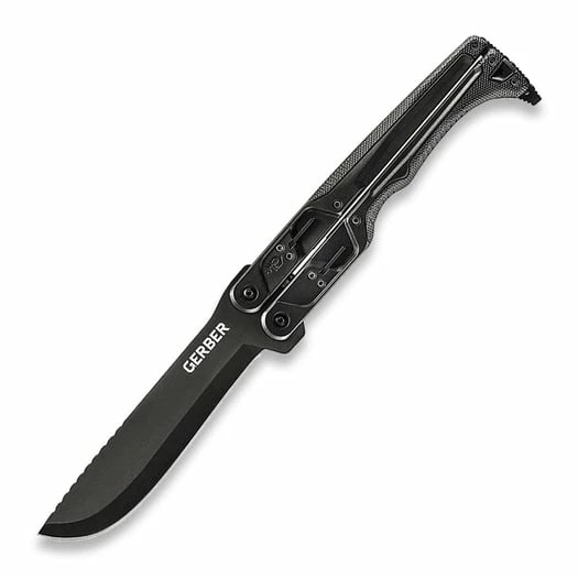 178 mm (17.78cm) black 420HC stainless blade. Black stainless handle. 203 mm closed. Two handling positions. Stability bar. Overstrike guard. Black nylon MOLLE compatible belt sheath. Boxed.