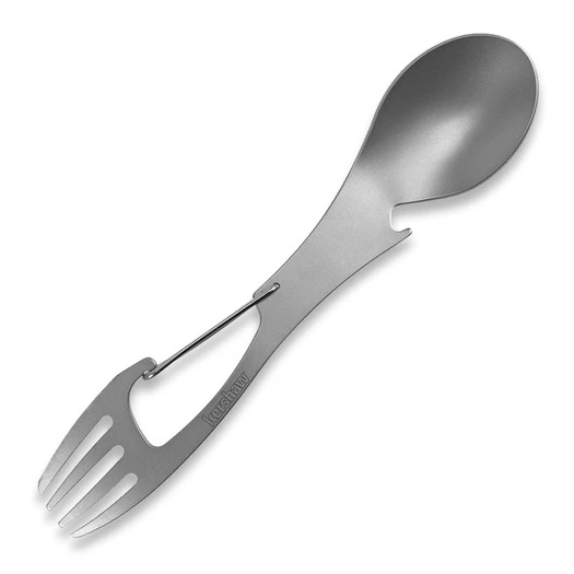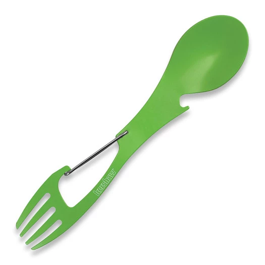 For those with larger hands or who just prefer a little more length in their cutlery, Kershaw brings you the Ration XL. It’s a new version of the popular Ration eating utensil and it offers all the tools of the original Ration, but is 60% larger overall. This oversized Ration comes in bead-blasted stainless steel—but we also offer a version in bright spring green. And, of course, the Ration XL still features the carabiner clip that makes it easy to attach to backpack, briefcase, or purse.